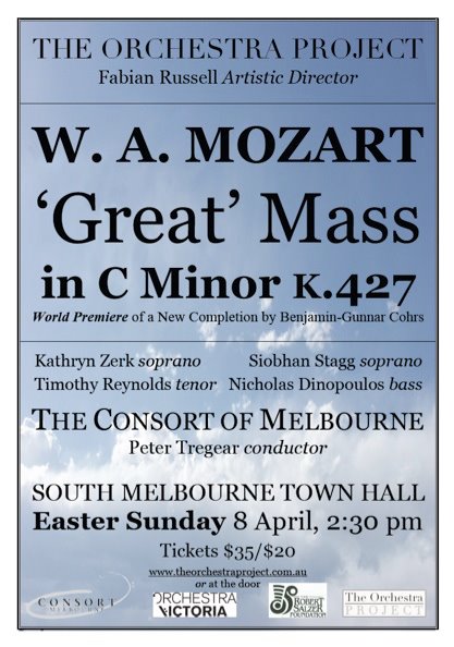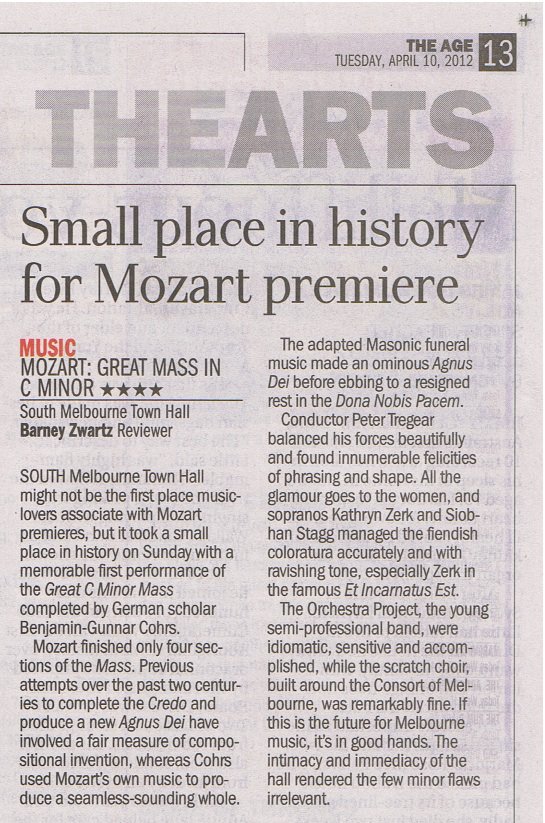 Press concerning our world premiere performance of a new completion of Mozart's Mass in C Minor KV427 on 8 April 2012 can be found here (preview), and here (review).