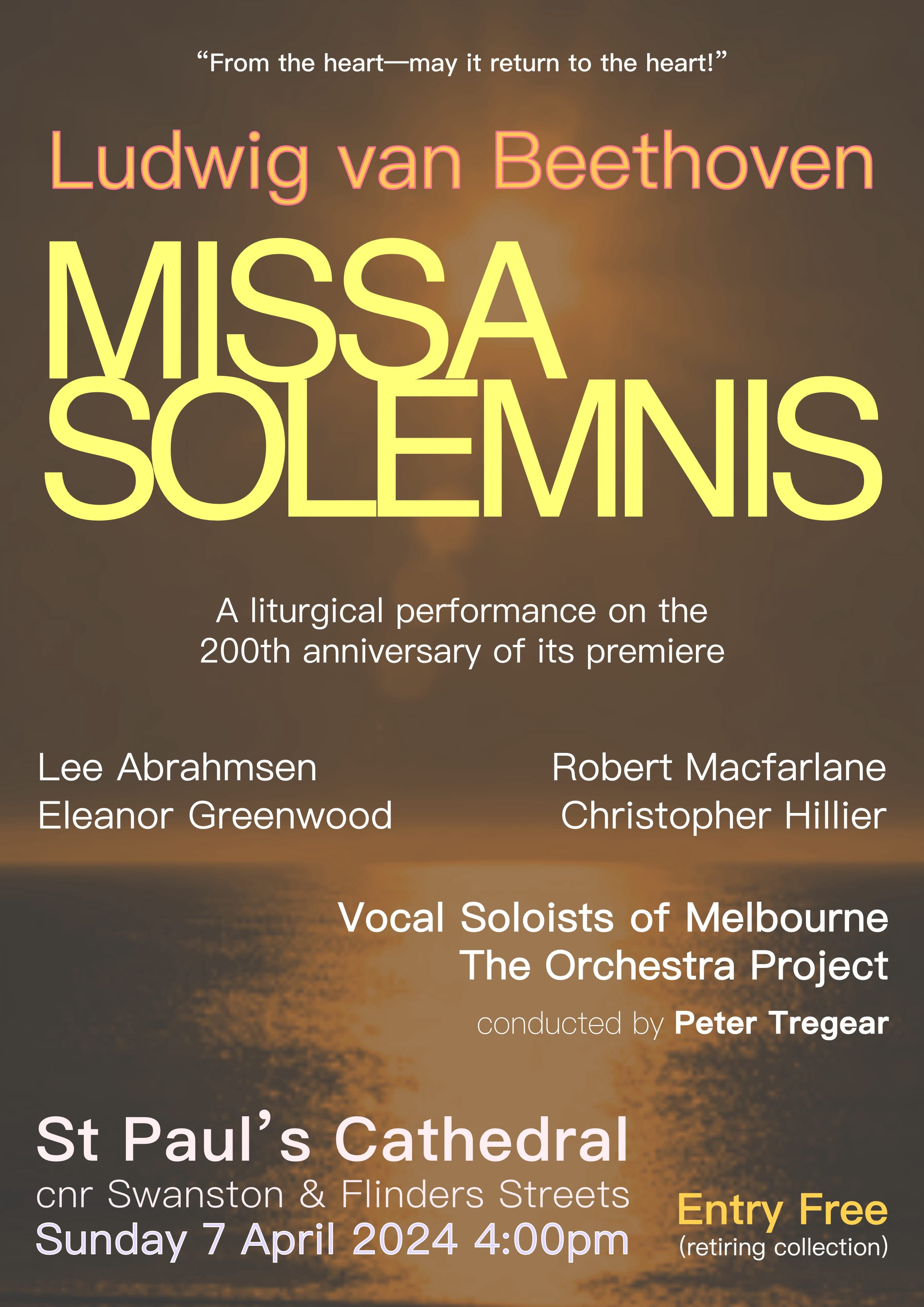 A story in Limelight magazine about the performance of the Missa Solemnis in April 2024 can be found **here.**